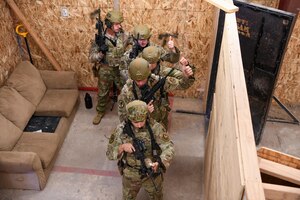The 91st Security Forces Group, 5th Maintenance Squadron, 5th Force Support Squadron and 5th Security Forces Squadron collaborated to create a memorial wall of the 14 security forces Airmen who have fallen in the line of duty since the tragedy of Sep. 11, 2001. The memorial wall is a key component