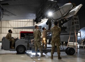Jan. 25, 2024 5th AMXS Competes in Annual Load Crew Competition Airmen assigned to the 5th Aircraft Maintenance Squadron load an inert AGM-158 Joint Air to Surface Standoff Missile (JASSM) onto a B-52H Stratofortress during the 2024 annual weapons load competition at Minot Air Force Base, North Dakota, Jan. 19, 2024. These Airmen were tasked to load the JASSM