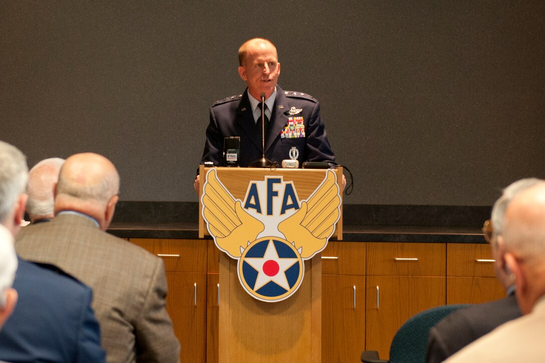 Lt. Gen. Stephen Wilson talks about changes to the nuclear enterprise during an Air Force Association event at the AFA Headquarters Building June 24, 2014, in Washington, D.C. The largest change Wilson said to expect is a shift in culture, brought on by the recent results of the Force Improvement Program implemented in April. Wilson is the commander of Air Force Global Strike Command. (U.S. Air Force photo/Staff Sgt. Torri Ingalsbe)