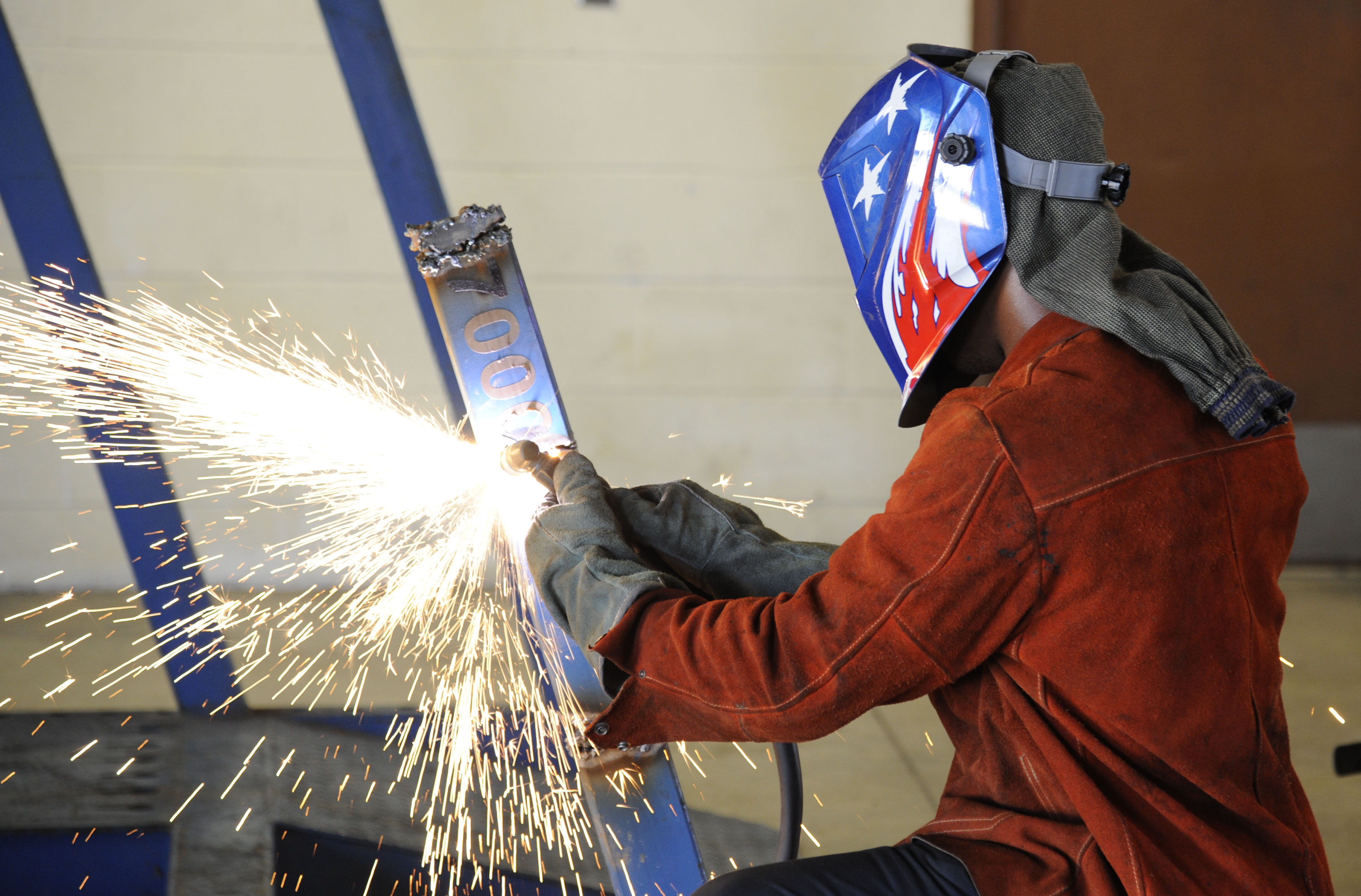 Airman 1st Class Jamil Dixon, 2nd Logistics Readiness Squadron vehicle maintenance journeyman, uses a plasma torch on Barksdale Air Force Base, La., Aug. 6, 2013. Dixon used the torch to disassemble a collision repair machine for scrap metal. (U.S. Air Force photo/Airman 1st Class Andrew Moua)