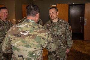 Chief Master Sgt. Justin Daigle, 9th Expeditionary Bomb Squadron Maintenance Senior Enlisted Leader, waits to marshall out a B-1B Lancer during Bomber Task Force 24-2 at Morón Air Base, Spain, April 2, 2024. BTF 24-2 is a part of LSGE 24, an umbrella term that incorporates dozens of separate